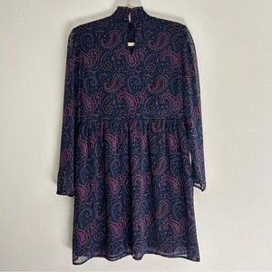 ModCloth Pink Navy Black and Gold Paisley Mini Dress Long Sleeves Size Small