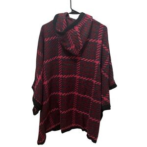 Soft and cozy cape cardigan. Red plaid. One button closure. Oversized fit. Hoody.