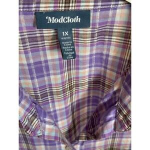 ModCloth Plaid To Know You Shirt Dress Plus Size 1X Purple Lavender