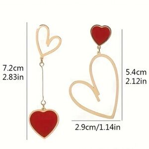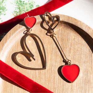 ✨ModCloth Posey Red & Gold Asymmetrical Heart Earrings