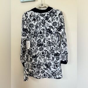 One of the holes near the wrist buttons has yellowing on one side of the opening- see last photo. Otherwise new with tags. See photos for dimensions.