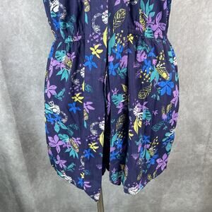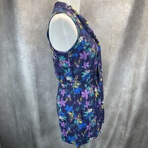 ModCloth Proactive Panache Lemur Romper Women Sz L Neck Tie Blue Tropical Floral