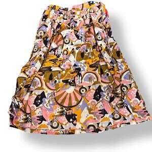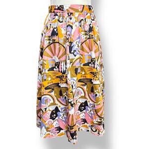 ModCloth Psychedelic Midi Skirt Retro Pink Orange Purple Tie Waist Bow Detail