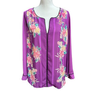 ModCloth Purple Floral “Podcast Co-Host” Blouse Size 1X
