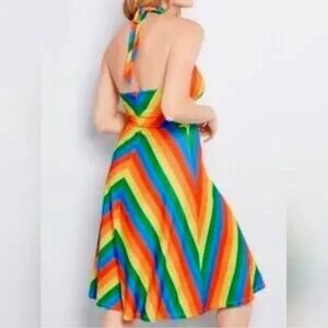 ModCloth Rainbow Stripe Halter Dress Knot Keyhole Detail Summer Festival Fun Hoco Homecoming Sorority Rush
