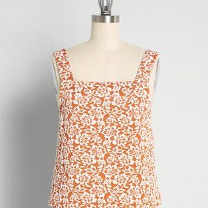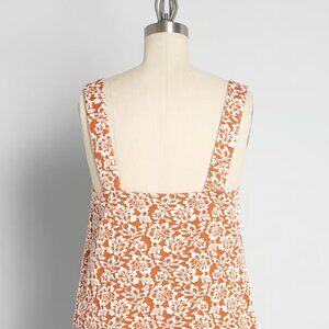 ModCloth Ready, Rosette, Go! Tank Top & A-Line Skirt Set in Orange Floral (S)