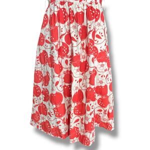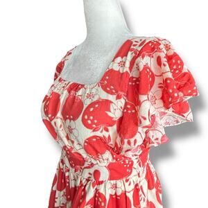 ModCloth Red Apple Print Flutter Sleeve Square Neck Cotton Midi Dress Small