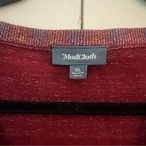 ModCloth Red Burgundy Metallic Cardigan NWOT Size XL