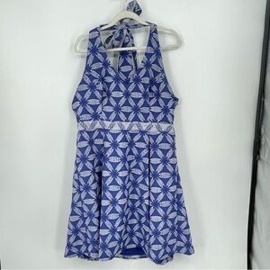 ModCloth Resplendence Jacquard Blue Floral Flattering A-Line Halter Dress XL