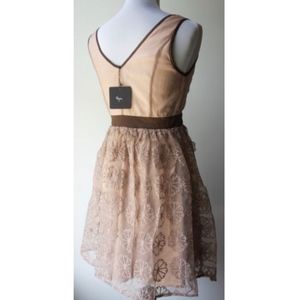 The designers at Ryu (the ModCloth Darling) are adept at combining sophistication & whimsy, resulting in truly unique pieces for us to enjoy! Fancy & flirty--the neutral cocoa hue prevents it from being too girly. Side zip, fully lined. Dry Clean Only. 97% Polyester, 3% Spandex.