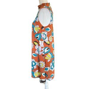 ModCloth S In With Excitement Brown Floral Mock Neck Dress Retro 70s Sleeveless