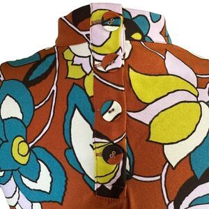 Elevate your wardrobe with this stunning ModCloth dress! This gorgeous sleeveless dress features a mock neck and button closure, adding a touch of sophistication to your look. The retro floral pattern and accents will transport you to the 70s, making it perfect for casual wear or parties and cocktails.