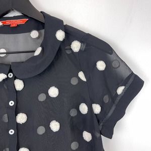 ModCloth (S) Polyester Sheer Textured Button Up Shirt Polka Dot Black