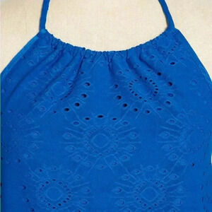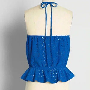 ModCloth Sapphire Blue Eyelet Halter Peplum Top - Size L