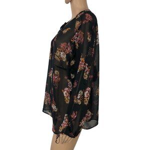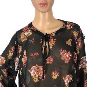 ModCloth Sheer Boho Floral Print Blouse Top Size 1X Lightweight Chiffon Tie Neck