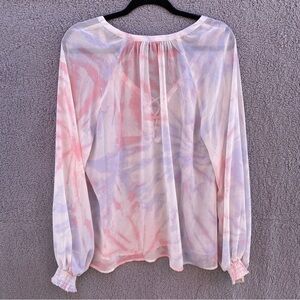 ModCloth Sheer Pastel Tie Dye Firework Lace Up Puff Sleeve Top Sz XL