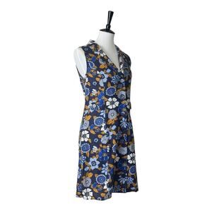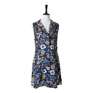 ModCloth Shirt Dress Collared Sleeveless Blue Orange Floral Women’s Size 6