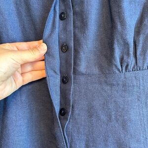 ModCloth Linen Blend Navy Blue Button Front Sleeveless Fit-&-Flare Dress