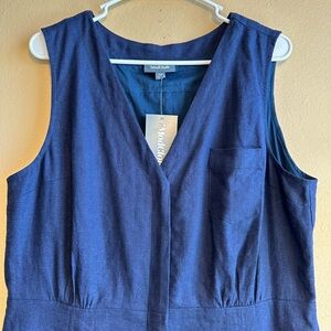 ModCloth Sleeveless Navy Blue Linen Blend Dress Size 14 NEW