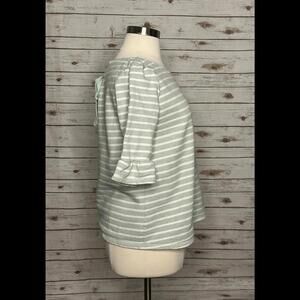 ModCloth 'Spiffed Up Saturday' green striped tie-back ruffle sleeve top Size XL