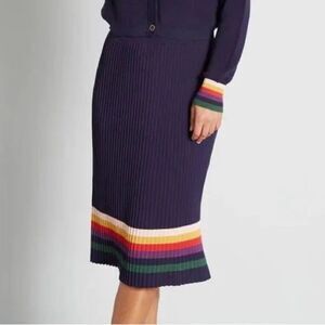 ModCloth Spirited Spectrum Navy Knit Skirt With Rainbow Stripes
