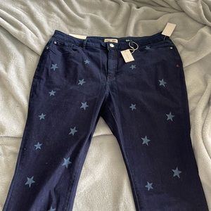 Precious star skinny jeans from ModCloth. Never worn! Size 20, fits true to size. Dark blue denim with light blue stars. Originally from a company called “Warp & Weft” but I bought them from ModCloth! Send me an offer :) Accepting all reasonable offers!!!