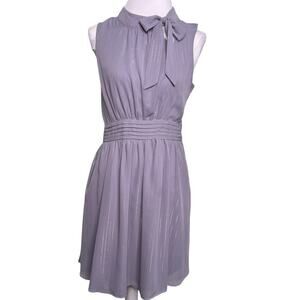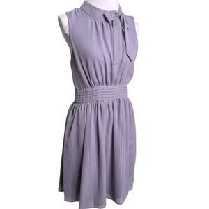 ModCloth Sunny City A-line Tie Neck Grey Dress Silver Sparkles Stripe Medium