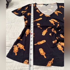 Cute otter design top. Tie front faux wrap.