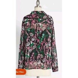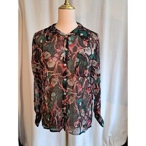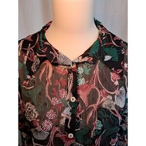 ModCloth Swan Lake Soiree Button-Up Shirt Sheer Chiffon Long Sleeve Size S
