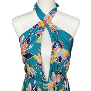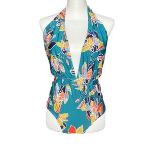 ModCloth Swimsuit Women’s Medium Teal Floral One Piece Bethany Halter Retro