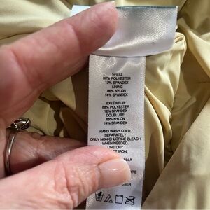 - Shell: 88% Polyester, 12% Spandex. Lining: 86% Nylon, 14% Spandex