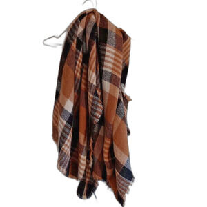 ModCloth Tan Black Brown Plaid Raw Fringe Blanket Scarft Women's Wrap