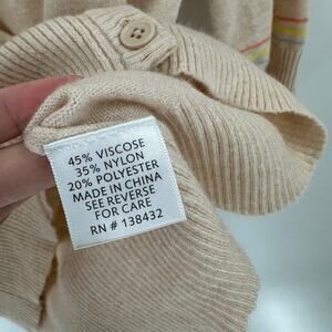 ModCloth Tan Striped V-Neck 3/4 Sleeve Button Front Cardigan Women's Size Large