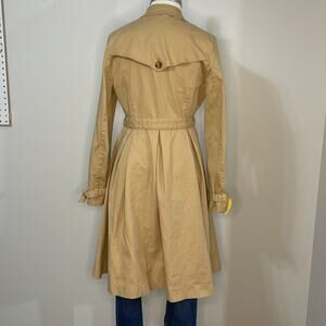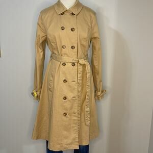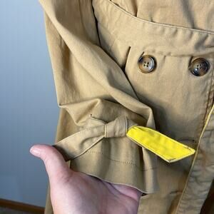 Super cute trench. Great length, great color... tan with yellow. Runs small. Excellent condition.