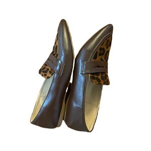 ModCloth The Cats Meow Faux Leather Brown Loafers Leopard Print Panel Size 8