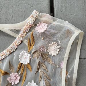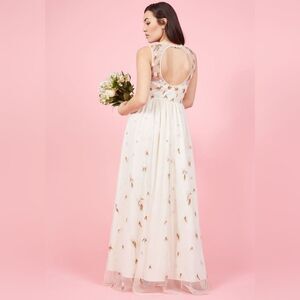 ModCloth The Simple Truth Cream Pink Embroidered Tulle Maxi Dress Size L