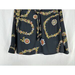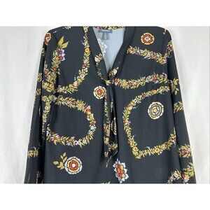 ModCloth Top Blouse Womens Size XL Gray Floral Long Sleeve Front Tie BOHO New