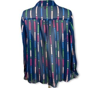 ModCloth Top Sheer Shirt Geometric Print Navy Print Blouse Size M