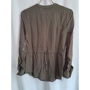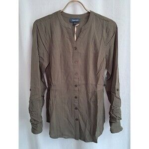 ModCloth Trusty Travel Tie Waist Button Up Top Shirt Olive Green Size XXS