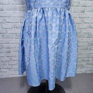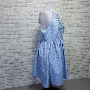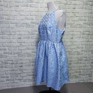 ModCloth Wendy Bird 14 Icy Blue Embroidered Floral High Neck Fit & Flare Dress. Zip back closure, NO pockets