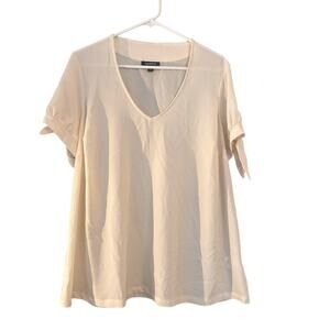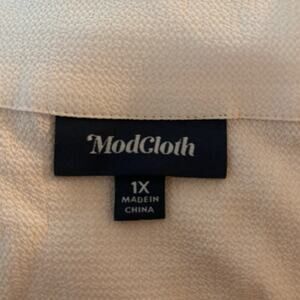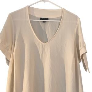 ModCloth Womans 1XCream Blouse Top Short Tie Sleeves V-Neck Flowy