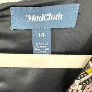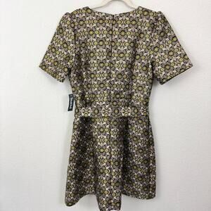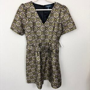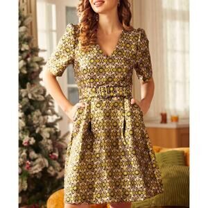 ModCloth Women Cocktails At Golden Hour Mini Dress Sz 14 Fit Flare Jacquard Gold