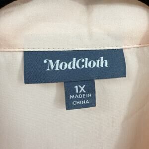 ModCloth Women Size 1X Tie Neck Blouse Peach Silky Classic 3/4 Sleeve Button Up