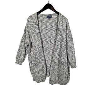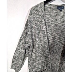 ModCloth Women Sz 1X Open Front Cardigan Teal Green Heather Cotton Knit Pockets