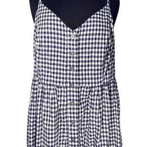 ModCloth Women’s 2X Navy Check Maxi Dress Cotton Button Front Sleeveless Casual