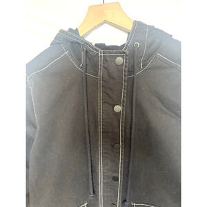 ModCloth Womens Anorak Utility Jacket Size Medium Hood Chore Trench Outdoor Hiking Black