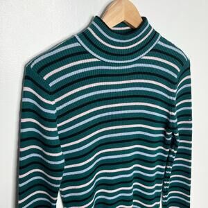 ModCloth Womens Long Sleeve Turtleneck Ribbed Sweater XL Green Stripe Sparkle