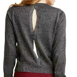 Women’s Metallic Shimmer Pullover Sweater Black Gray Open Back Keyhole Long Sleeve Medium