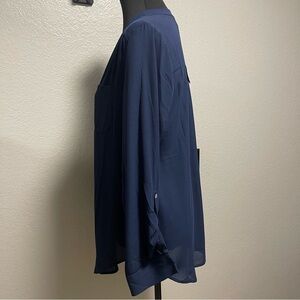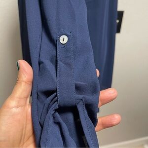 ModCloth Women’s Navy Blue Roll Tab Sleeve Sheer Top MEDIUM