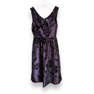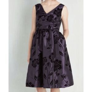 ModCloth Women's Purple Velvet Floral V-neck Fit Flare Midi Dress sz S Whimsigot